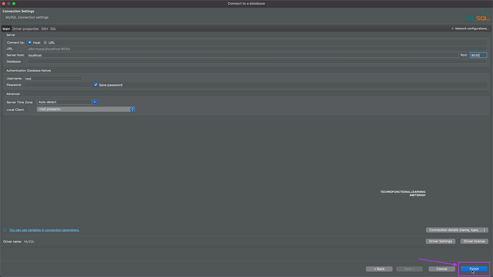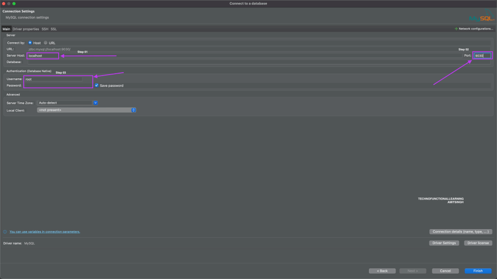 Step 05:, Now Enter your host, if it is On-Premise then localhost else cloudhost if it is on cloud, port as 9030, user name & password of database.