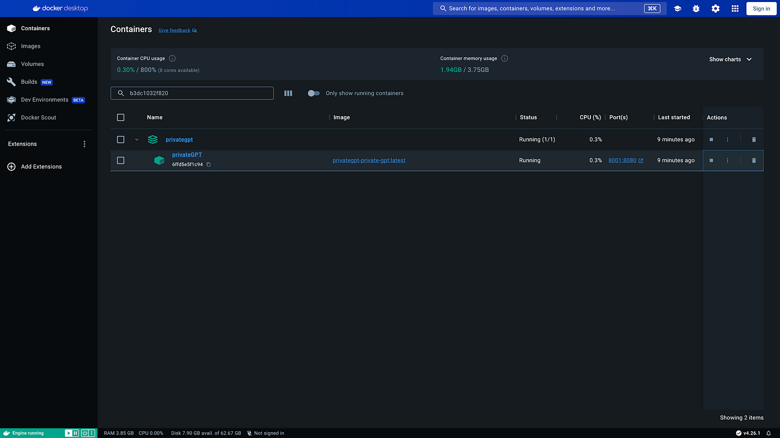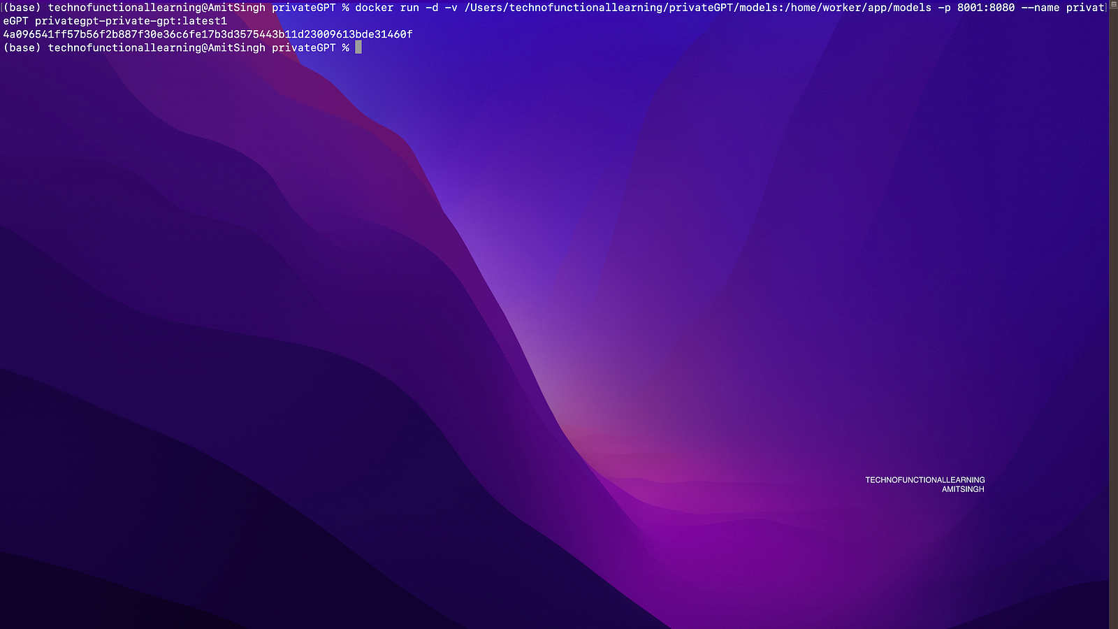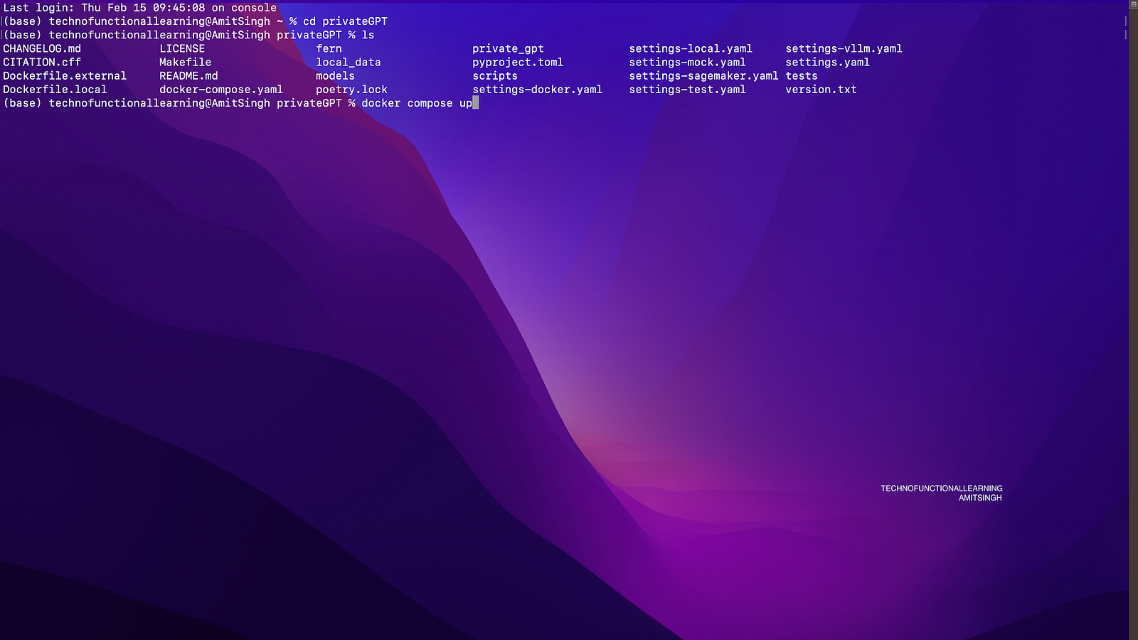 Step 02: Now enter into privateGPT directory and run below command, it will take some time and build docker image, if it gives you error that it is not able to find the models then you can download as per instruction provided on privateGPT website