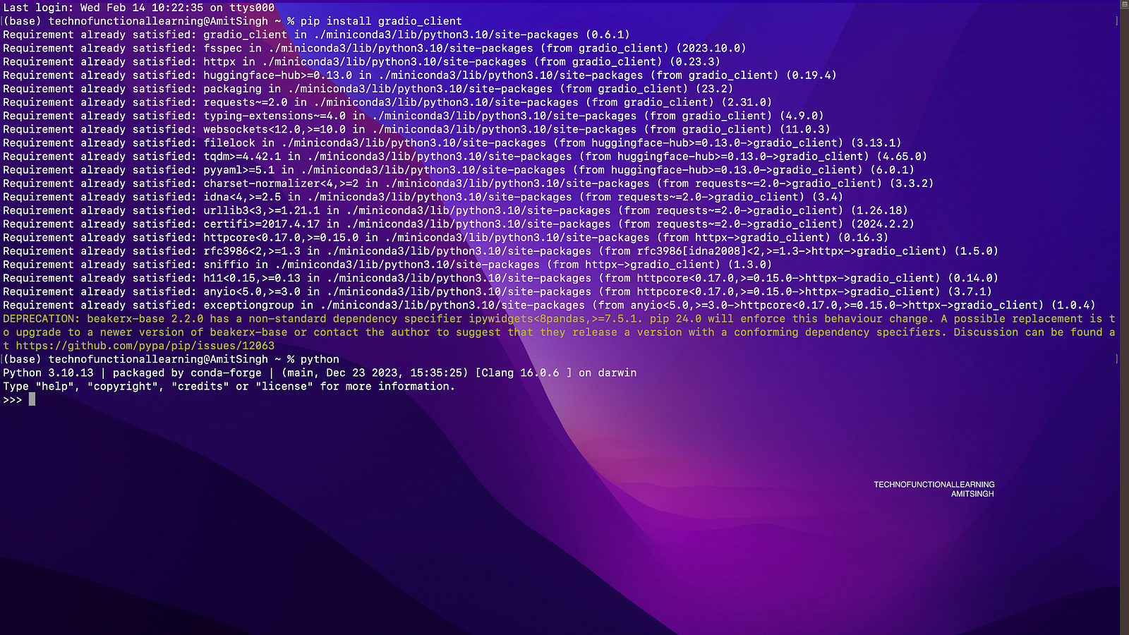 Step 11: To Interact with javascript api install @gradio/client javascript package with below command. If you do not have nodejs on MacOS then you can install from below link
