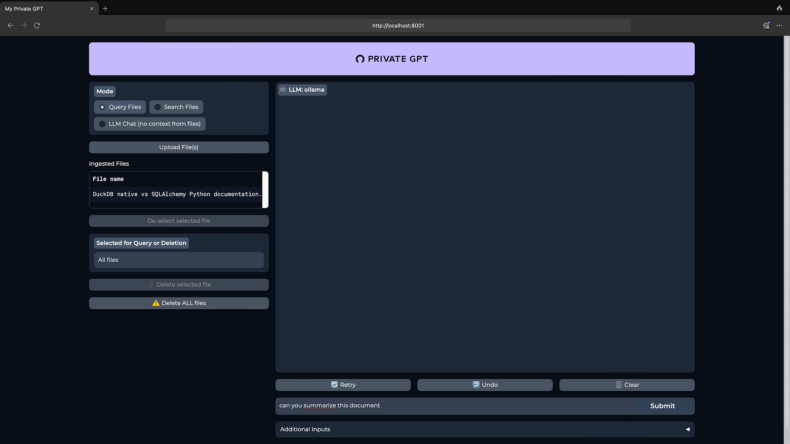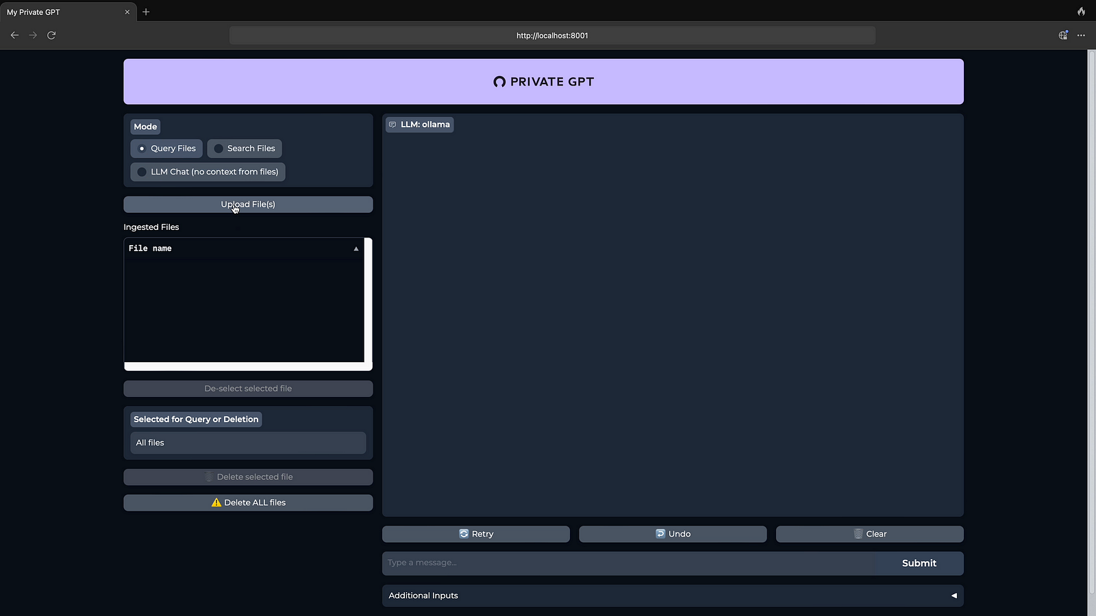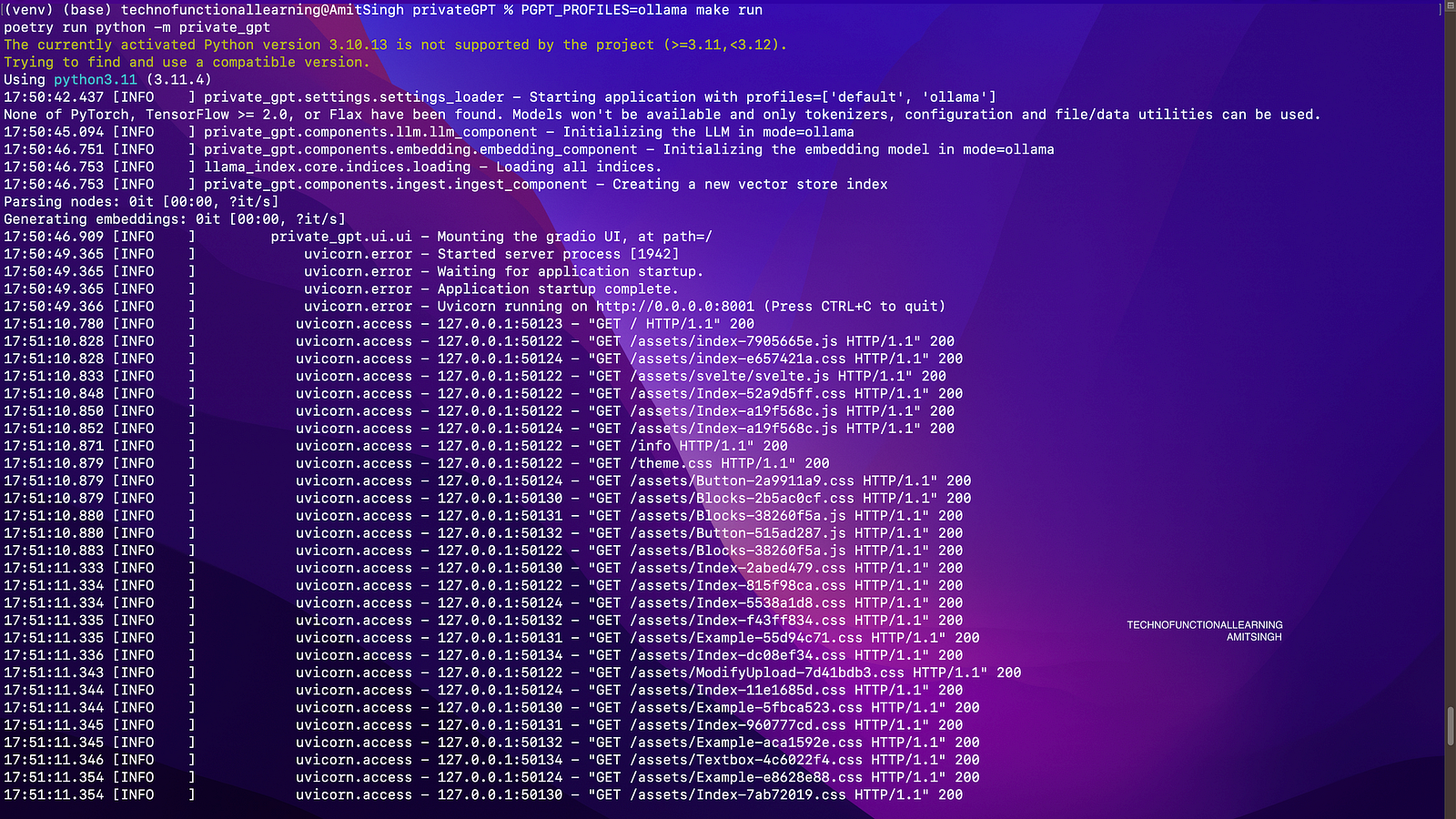 Step 11: Now open localhost:8001 to open Gradio Client for privateGPT.