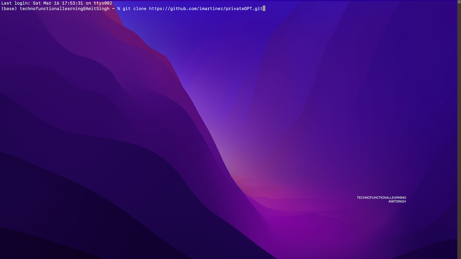 Step 01: First clone the repository with below command and enter into privateGPT Directory.