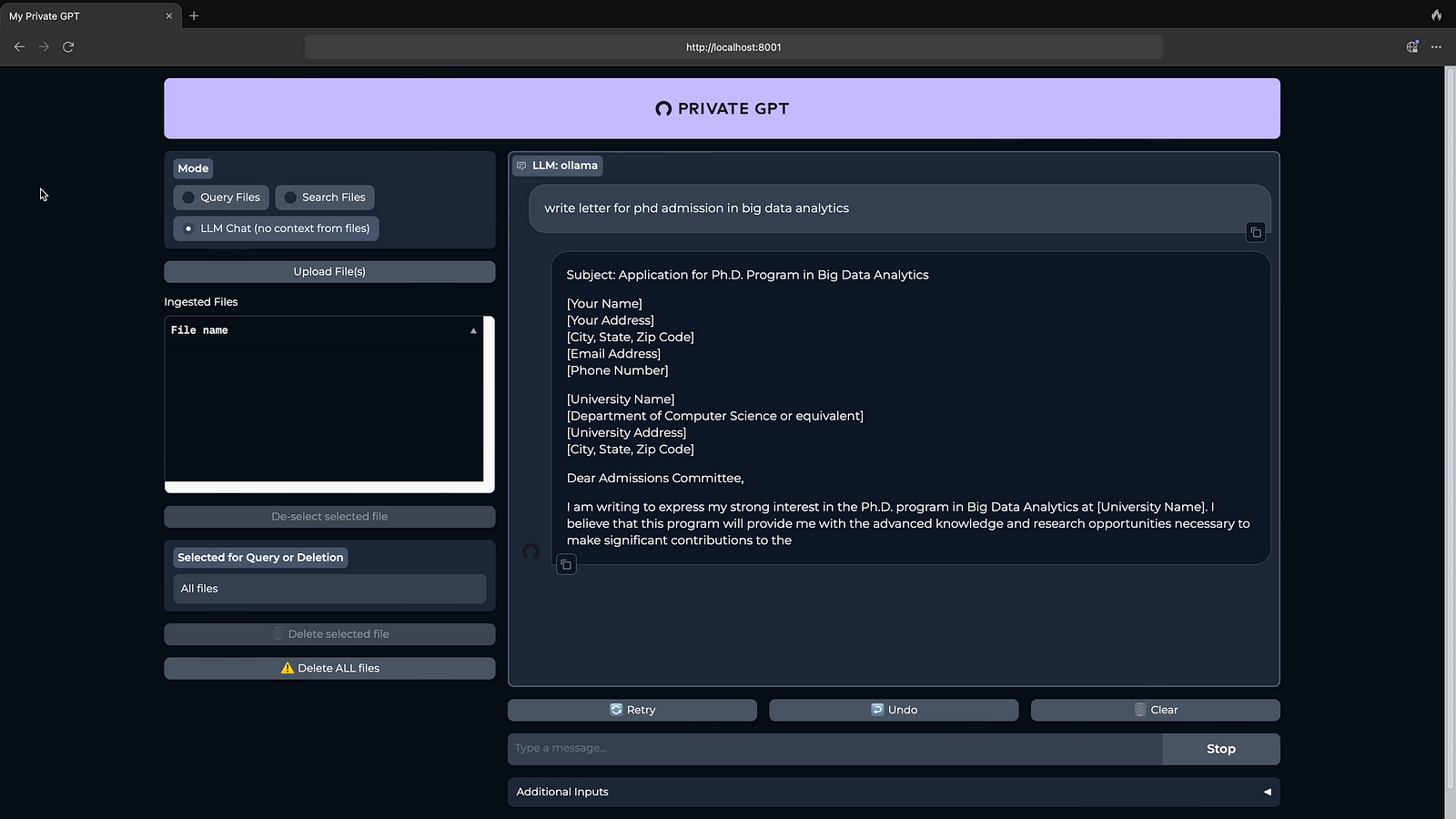 Step 12: Now ask question from LLM by choosing LLM chat Option.