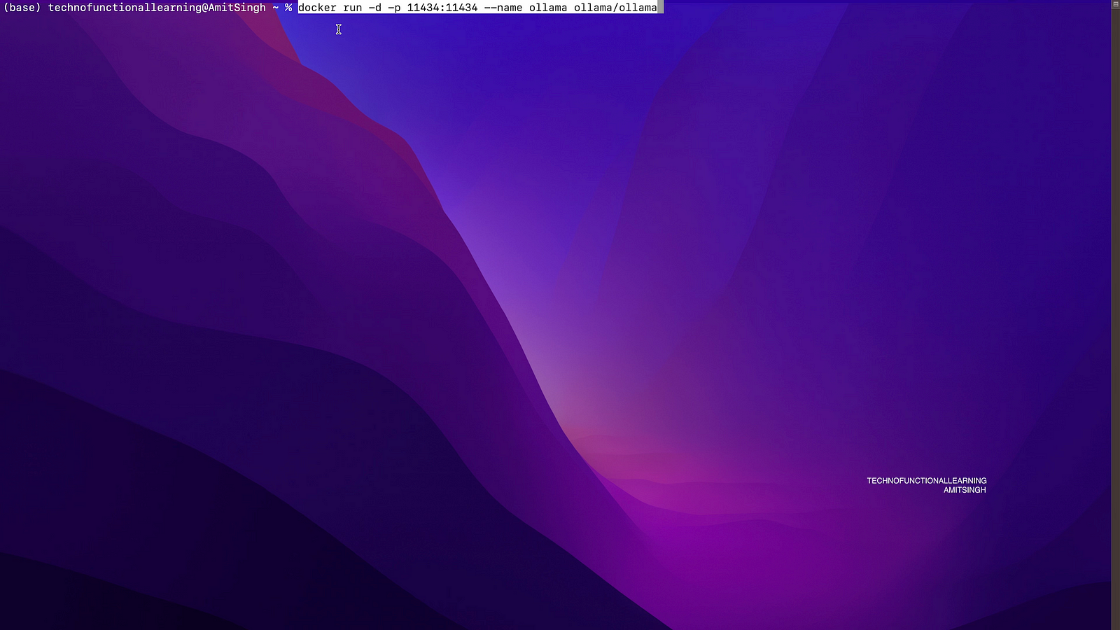 1) docker run -d -v ollama:/root/.ollama -p 11434:11434 — name ollama ollama/ollama