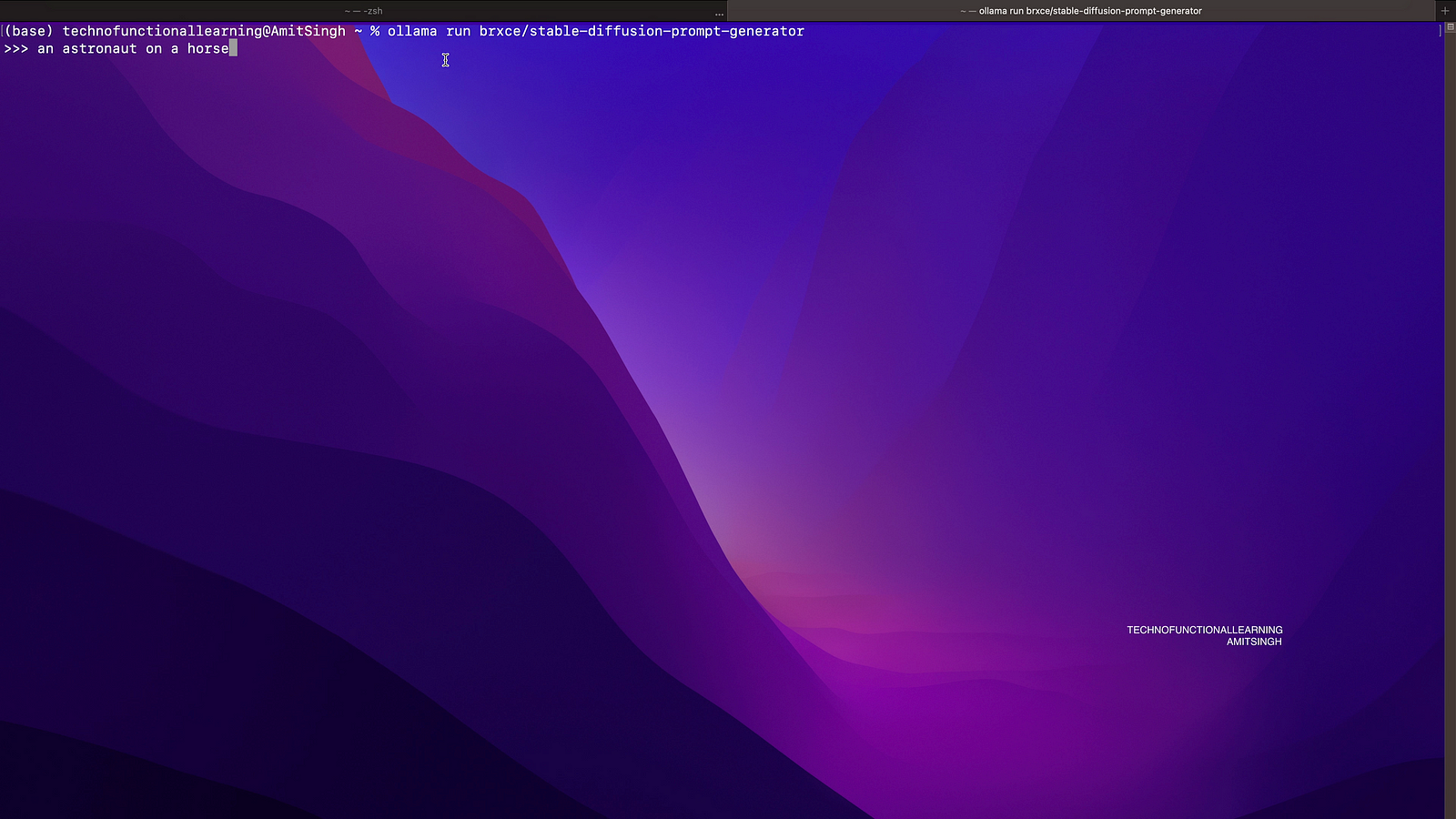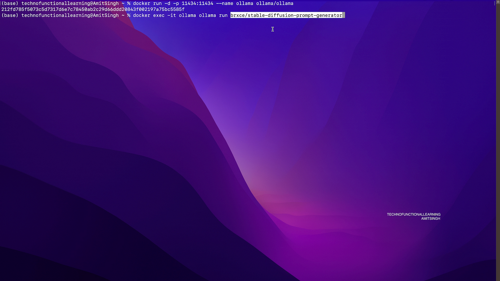 2) docker exec -it ollama ollama run brxce/stable-diffusion-prompt-generator