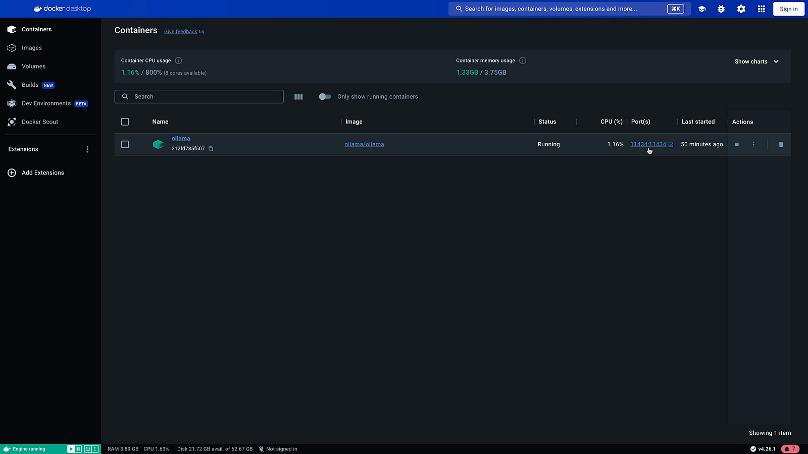 Step 04: You can also check Ollama Status in Docker Desktop.