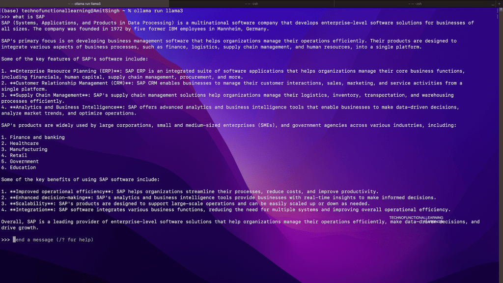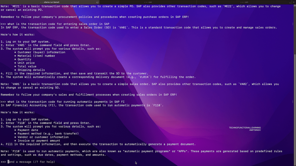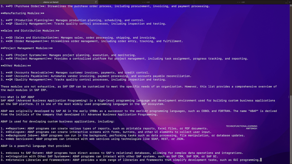 Explore llama3 model on Ollama for chat on Various Topics including Topics from SAP ERP/SAP S4/4HANA/SAP ABAP/SAP Fiori/Transaction Code/Custom ABAP reports/BAPI etc.