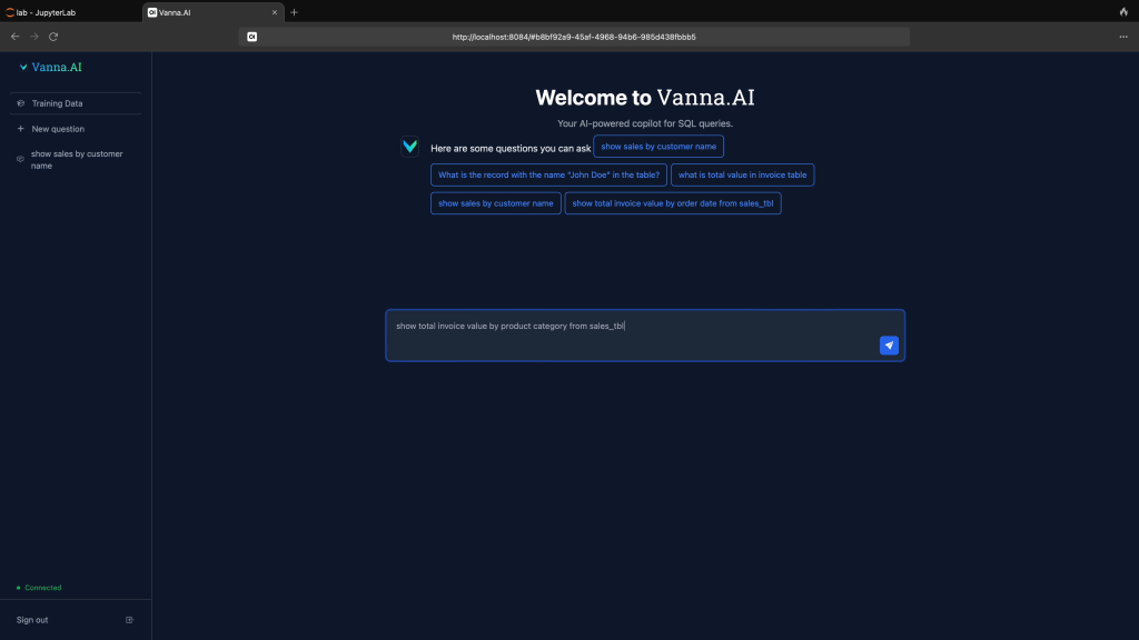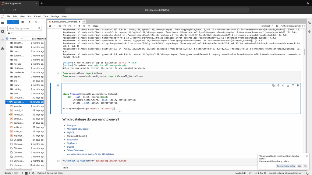 Step 03: Now Connect Vanna/Chromadb/Ollama-Mistral Model by typing and running below command in Jupyter Notebook