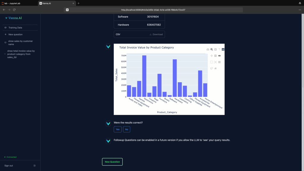 Step 09: Now Start asking question in Natural Language First it will show results and then generate automated Visualization based on Plotly like show below.