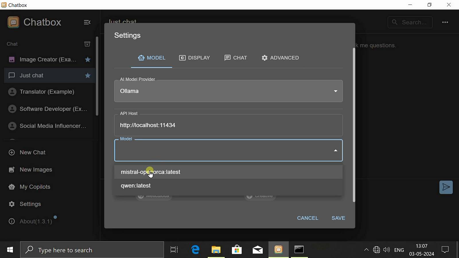 Step 05: Now choose your models and click on save as API host is already set by default.