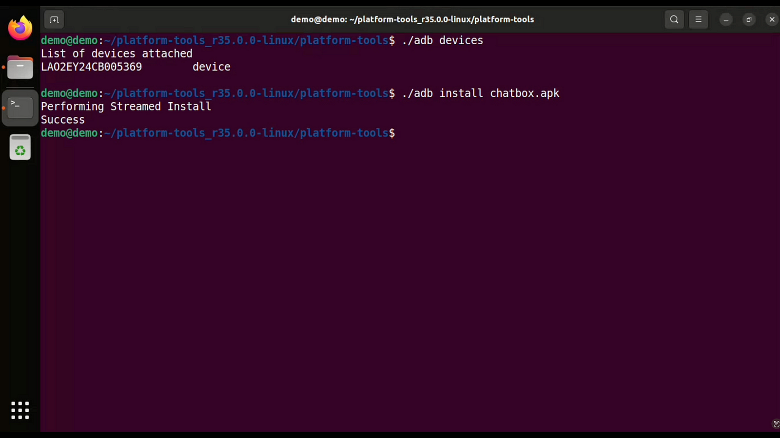 Step 02: Now Install Android app (Example chatbox.apk) by typing below command