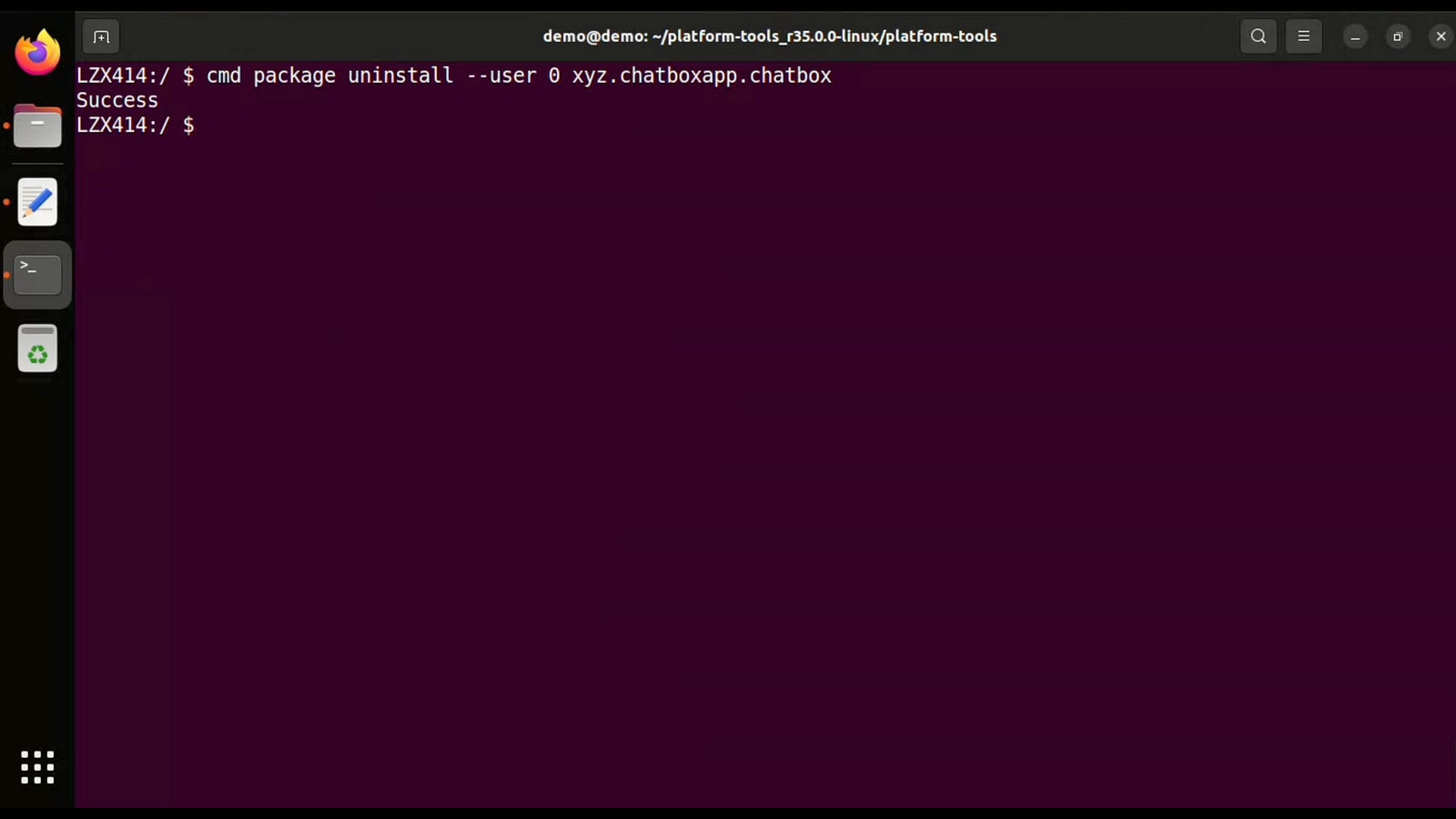 Step 04: Now type below command to Uninstall chatbox.apk app from Android via ADB.