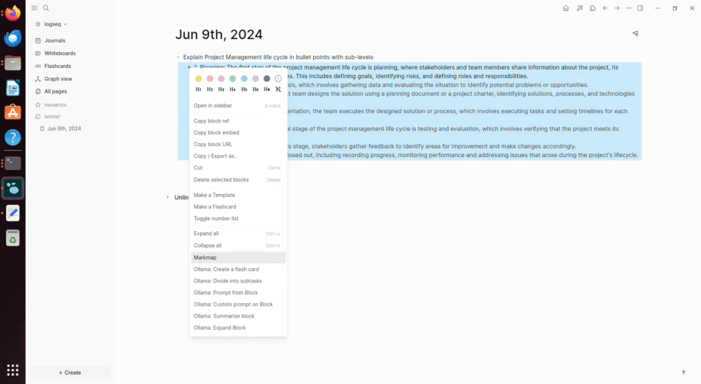 Step 04: Now right click on dot before question and click on Ollama prompt from block and wait for answer to get generated.