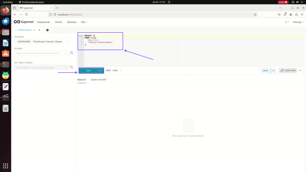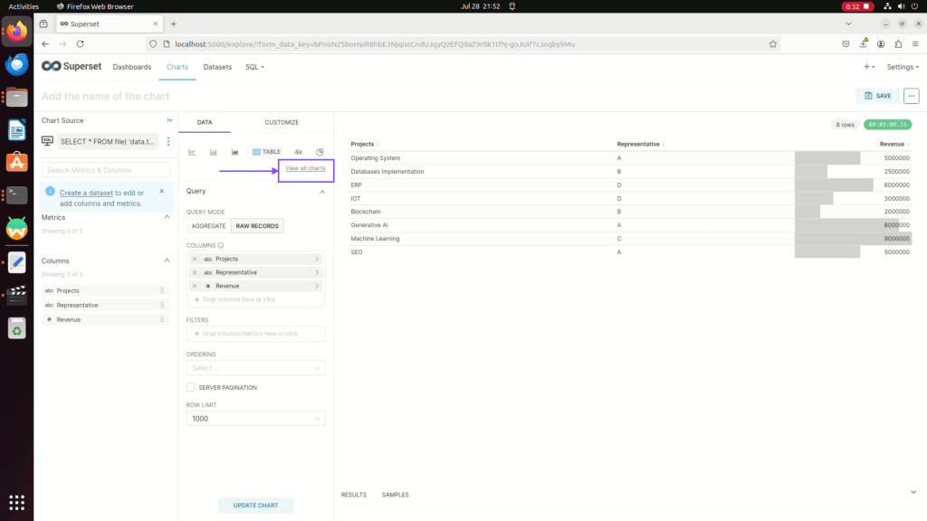 Step 08: Here you can see your data, now you can also write custom SQL Query or directly query files as shown in next step.