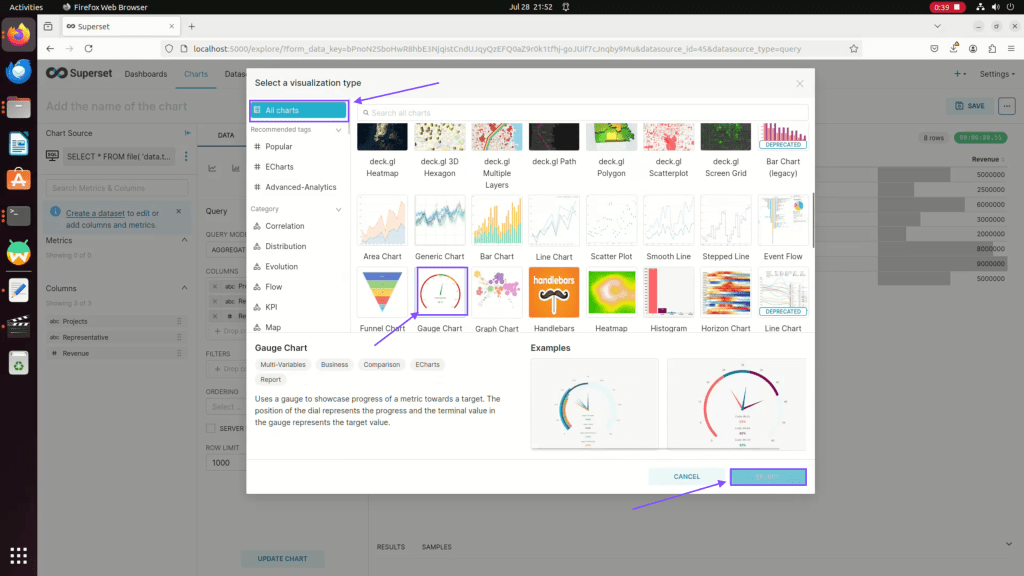 Step 12: Click on All charts, then choose gauge chart and then click on ok.