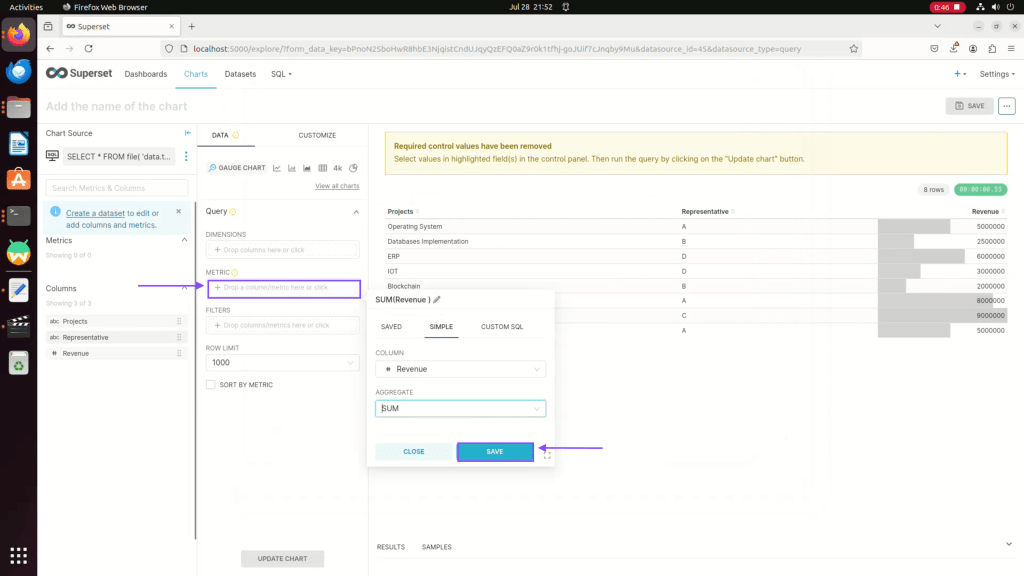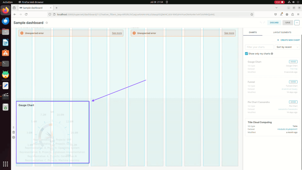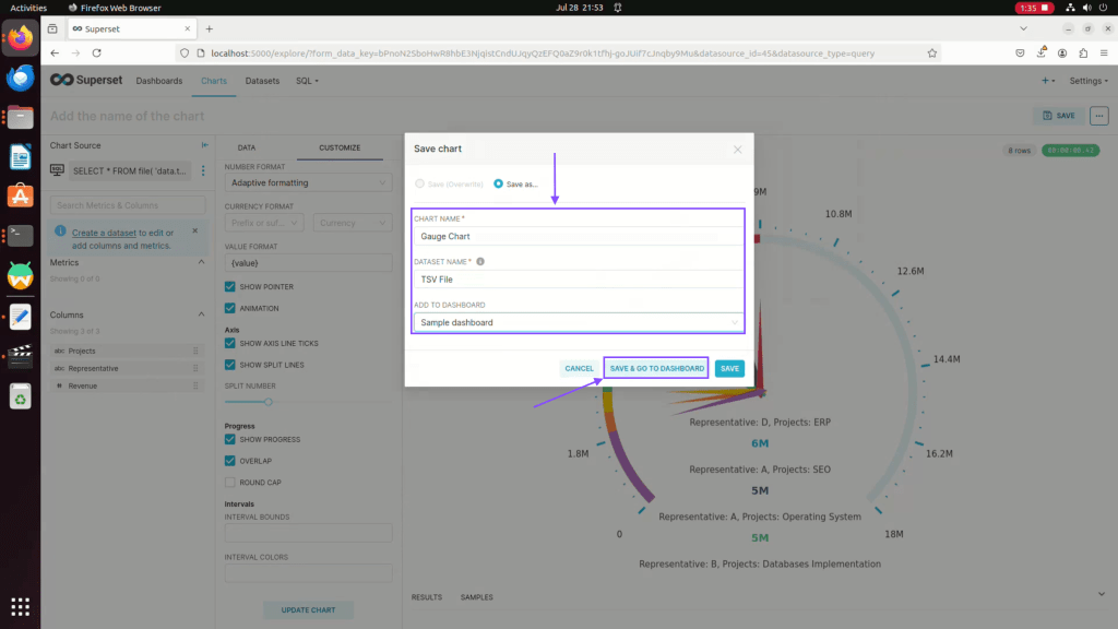 Step 18: Now enter the chart name, dataset name, and choose sample dashboard then click on save and go to dashboard.