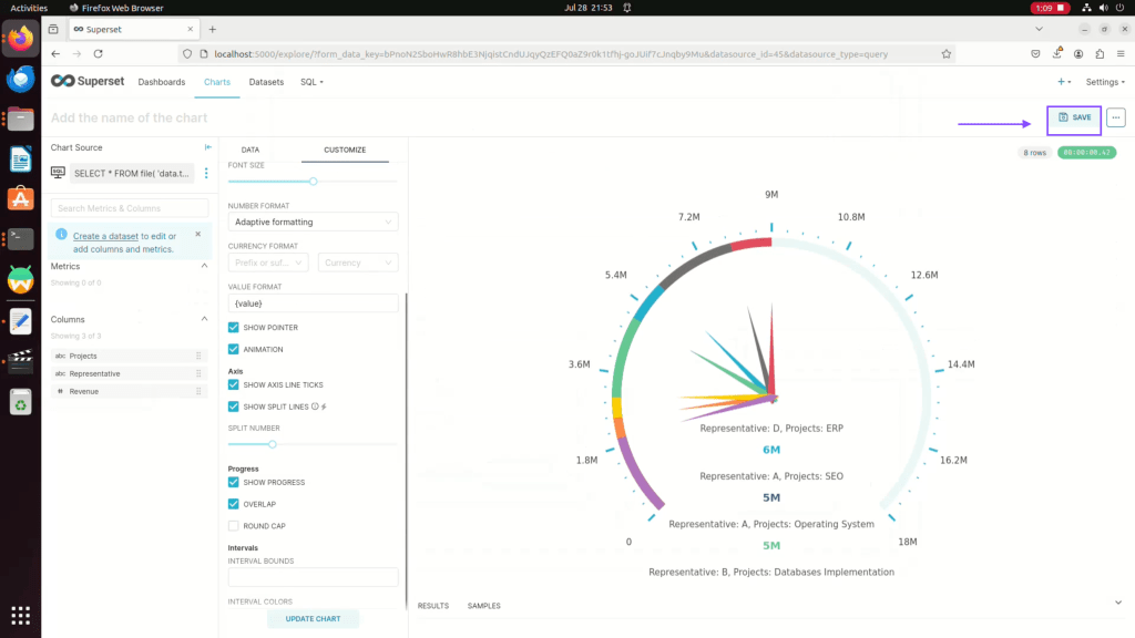 Step 19: Now you can drag and drop or resize the chart and then click on save .