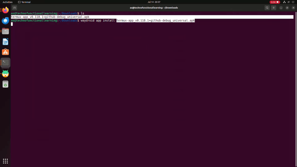 Step 03: Now type below command to install Termux app in Waydroid on Ubuntu
