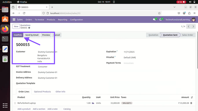 Step 02: Click on confirm to create Sales order from Quotation.