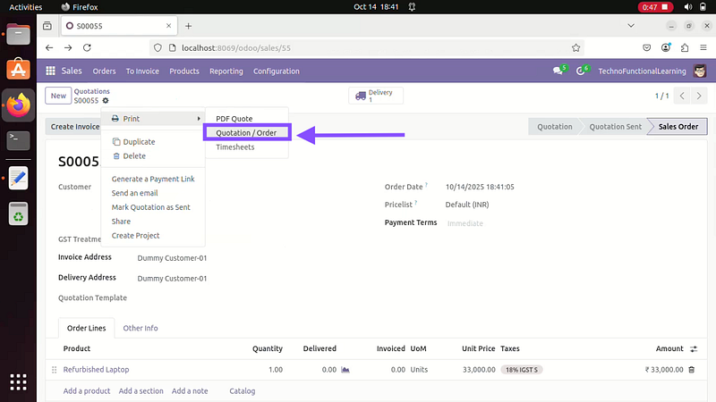 Simple demo on How to Create Sales Quotation/Sales Order/Material Delivery/Sales Invoice(GST)/Sales Receipt/RFQ/Purchase Order/Purchase receipt/Supplier invoice(GST)/Supplier Payment in Odoo ERP