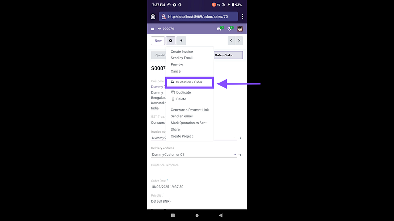 Step 04: This is How default Sales Order Print will appear on Mobile and PC