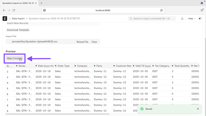 Step 9: if you have used the template, it should automatically perform mapping, you can click on map columns to verify it.